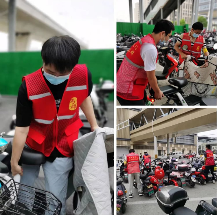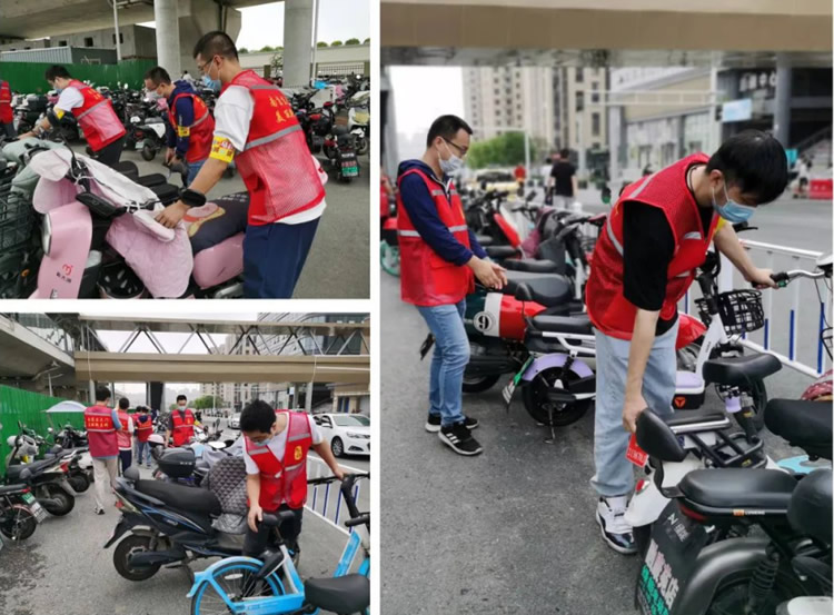 另一邊,元帥班和初心班的男干部也不甘示弱。面對(duì)停放雜亂的電動(dòng)車(chē),他們互相配合,合作整理,并引導(dǎo)正在停車(chē)的車(chē)主有序停放。原本略顯雜亂的停車(chē)區(qū)很快變得井井有條起來(lái)。