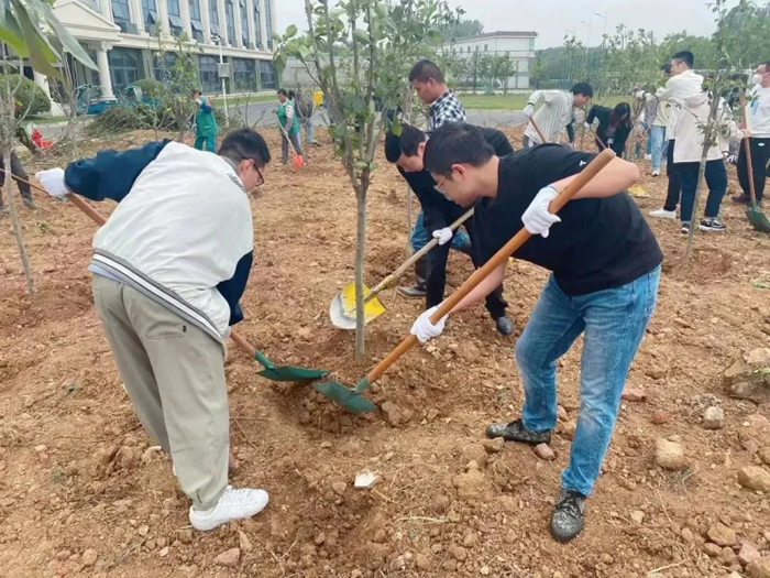除土球布條、挖坑、扶樹、填土、檢查調整......紙上得來終覺淺,覺知此事要躬行??油诘没蛱罨蛱珳\,埋樹根時或太松或太實,凡此種種細節(jié),都會影響樹苗成活率,大家也虛心聽從綠化師傅們的意見,耐心調整,并很快得心應手起來。