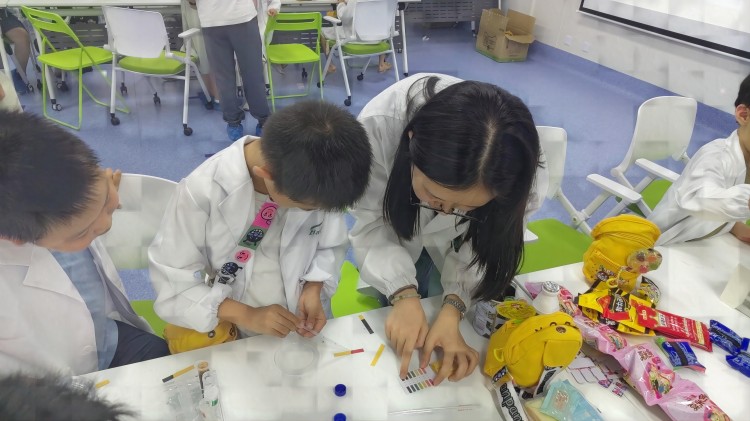 2. 淀粉遇碘變藍色:孩子們見證了淀粉溶液在加入碘后顏色的變化,了解到這一化學反應的奇妙,并被鼓勵在家中嘗試類似的小實驗。