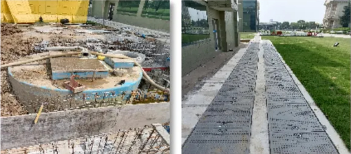 2022年6月,薛永峰開始將自己設(shè)想的畫面細(xì)化落實(shí),項(xiàng)目正式立項(xiàng)。前期的調(diào)研設(shè)計(jì)工作是項(xiàng)目順利落地的保障。海陵草坪之下,是二十年來(lái)“勤懇”運(yùn)行的暗管、電纜和壓力管道,盡管有圖紙可供參考,但畢竟年份久遠(yuǎn),實(shí)際的情況只有現(xiàn)場(chǎng)勘察才能確認(rèn)。而施工方案的設(shè)計(jì)既要滿足海陵同步使用同步改造的需求,又需要便于后期對(duì)草品美觀度的恢復(fù),使之符合廠區(qū)整體的環(huán)境風(fēng)格。薛永峰關(guān)注著設(shè)計(jì)圖的每一個(gè)細(xì)節(jié),并對(duì)設(shè)計(jì)單位提出改進(jìn)意見。項(xiàng)目進(jìn)度穩(wěn)步推進(jìn)。