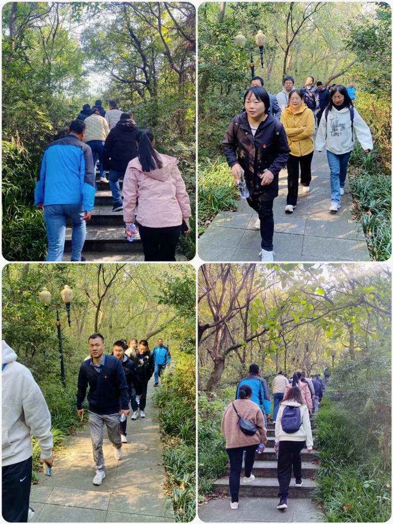 海陵選擇了更具挑戰(zhàn)性的路線。深林靜謐,空氣清新,眾人沿著陡峭的臺階上行。起先,大家信心滿懷,激情高昂。然而,隨著腳步的邁進,肌肉酸痛和呼吸急促的感覺逐漸襲來,大家逐漸感受到了身體的疲憊和意志的挑戰(zhàn)。此時,有的同事氣喘吁吁,有的同事步履蹣跚。