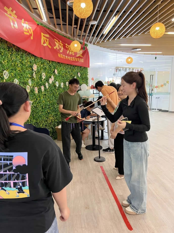 投壺也叫“射壺”,是古代士大夫在宴飲時(shí)所做的一種投擲游戲,是一種從容安詳、講究禮節(jié)的活動(dòng)。投壺小秘訣:在投擲時(shí),保持平衡,雙腳分開,身體重心向前,眼里和手感是重中之重。這個(gè)游戲可以鍛煉大家的動(dòng)手能力和專注力,在投壺的同時(shí)也能培養(yǎng)大家的判斷力及準(zhǔn)確性,是一項(xiàng)充滿趣味和挑戰(zhàn)的游戲。萬萬沒想到我們員工中誕生的神射手就是一箭三聯(lián)的方練。