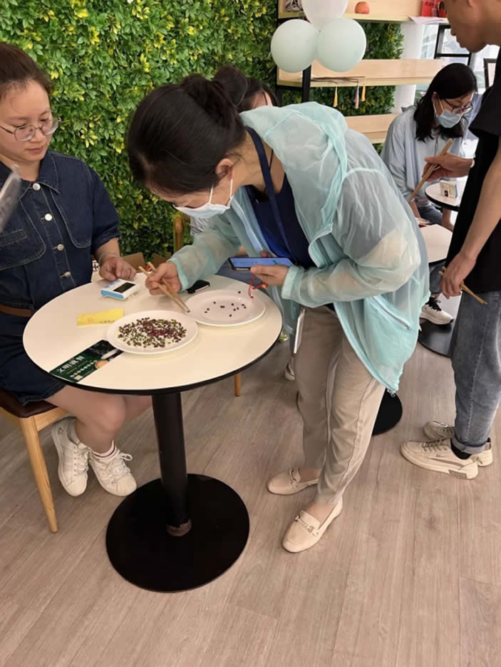 紅豆生南國,春來發(fā)幾枝。這蜜豆不是普通的蜜豆,是王維詩里面的蜜豆。夾蜜豆可是對(duì)手穩(wěn)有很高的要求的,打飯愛“手抖”的員工可要注意啦,手一抖將前功盡棄。夾蜜豆要領(lǐng):手穩(wěn)、氣平、心態(tài)好。大家還記得當(dāng)時(shí)自己夾了幾顆蜜豆嗎?而夾到最多蜜豆獲得蜜豆王稱號(hào)的就是收獲滿滿35枚小蜜豆的楊新悅。