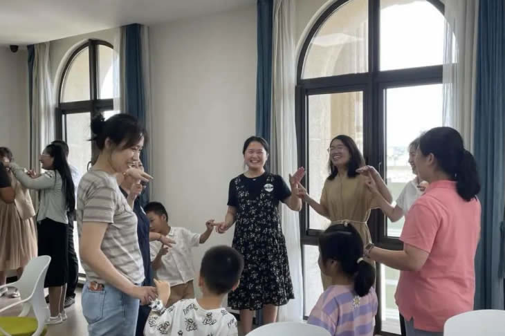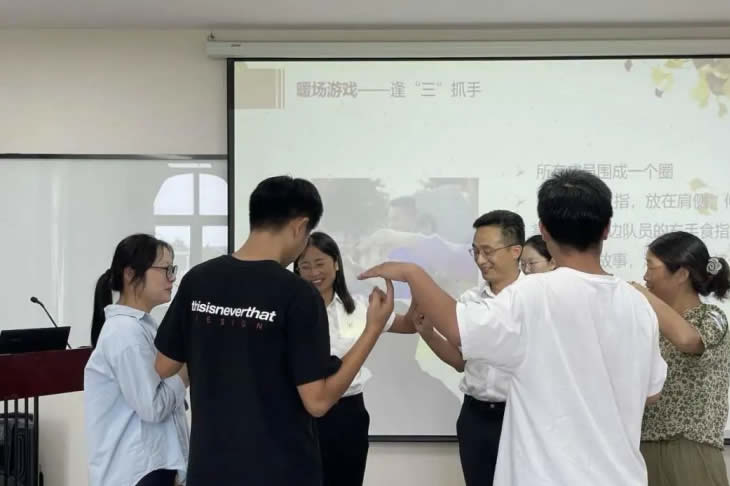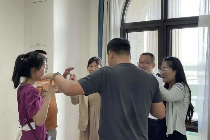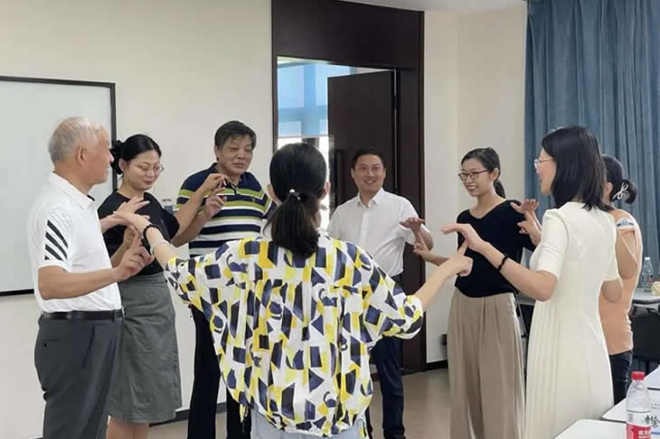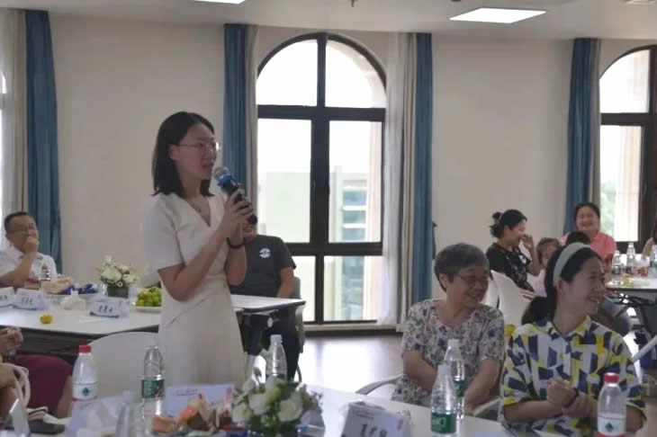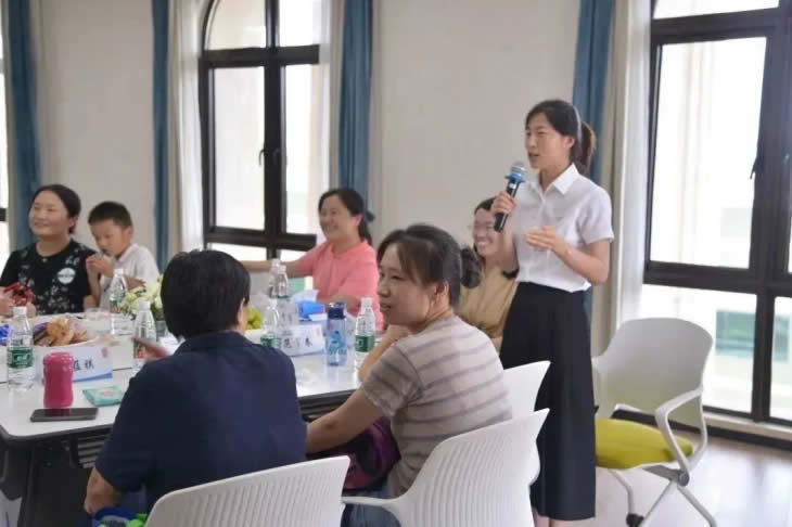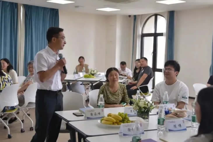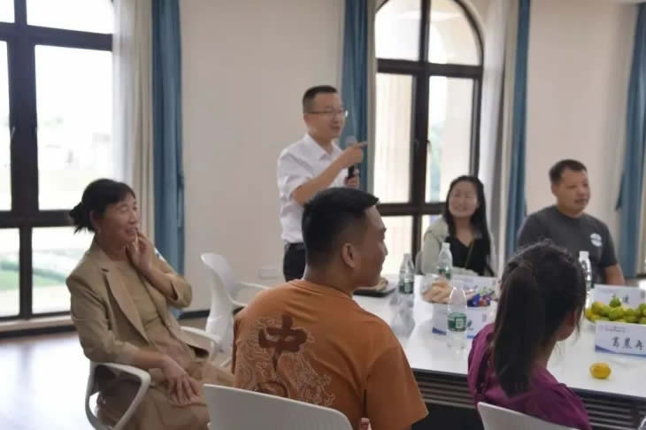 結(jié)束參觀后,家屬們跟隨工匠走入座談會(huì)現(xiàn)場(chǎng),傾聽主持人介紹海陵藥業(yè)的企業(yè)文化。座談會(huì)開始,大家在“抓手指”游戲中打破拘謹(jǐn)、放松心情,歡聲笑語充盈著整個(gè)會(huì)議室。