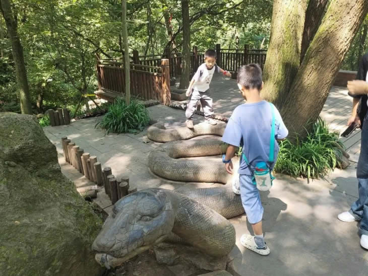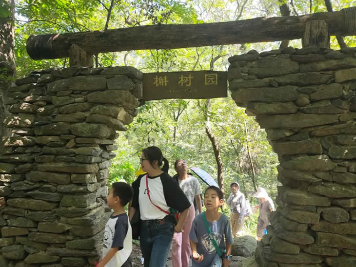 綠樹蔭濃夏日長,行程第一站是鐵山寺國家公園。在導(dǎo)游的講解與陪同下,工匠與家屬步行2小時(shí)穿越這處天然氧吧。途中經(jīng)過鐵山寺、孔雀園、蟒蛇澗、石鼓堆等兼具人文氣息與自然美景的林中站點(diǎn),認(rèn)識(shí)了“咬人樹”漆樹、金錢草等植物,在伏案工作之外獲得天然體驗(yàn)。