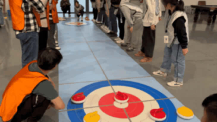 最后來到了大家期待已久的“冰壺大作戰(zhàn)”。旱地冰壺的投擲環(huán)節(jié),既是技術,也是戰(zhàn)術,令人驚喜的是,各隊很快就擬定了“作戰(zhàn)方針”,隨著賽程進展,拉引擊球(Draw)、防衛(wèi)擊球(Guard)、敲退擊球(Freeze)、晉升擊球(Promote)、射擊移位擲球(HitandRoll)等變換自如。大家在比賽中時而屏息凝神,時而拍掌喝彩,將團建活動推向了高潮。