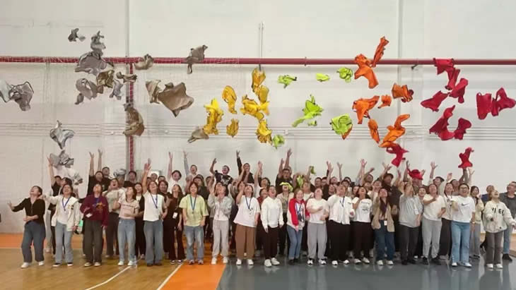 體力腦力比拼以后,來到了耐力賽,指壓板已經(jīng)全部就位,其中設置了六個環(huán)節(jié),轉(zhuǎn)象鼻—手持乒乓—跳繩—吹氣球—爆氣球—摸石過河,環(huán)環(huán)相扣,考驗團隊成員無縫銜接的默契度,請看大家一鏡到底的精彩配合吧。